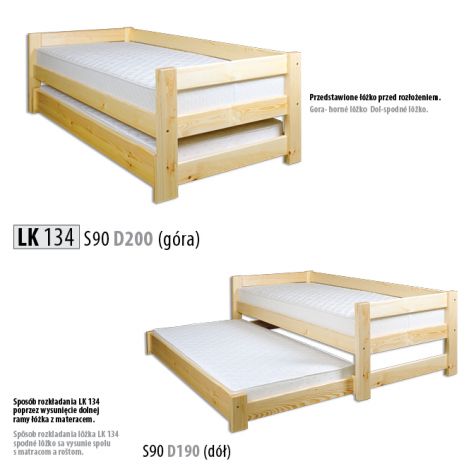 LK 134: Méret teljes: 90*200 cm., kihúzható rész: 90*190 cm. Ár: 115.500 Ft.